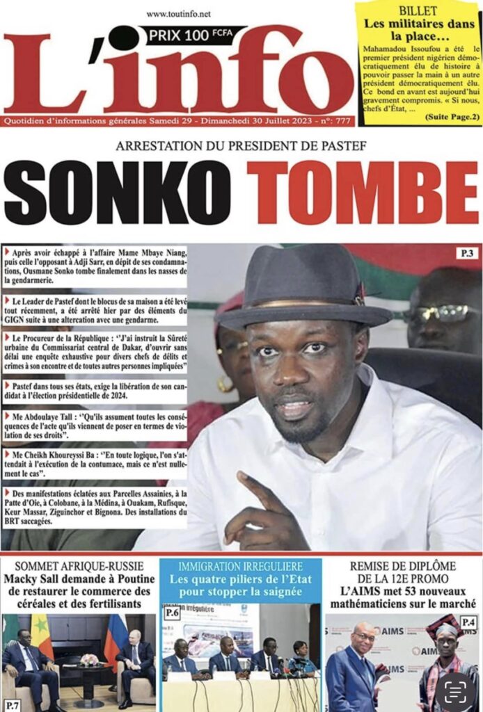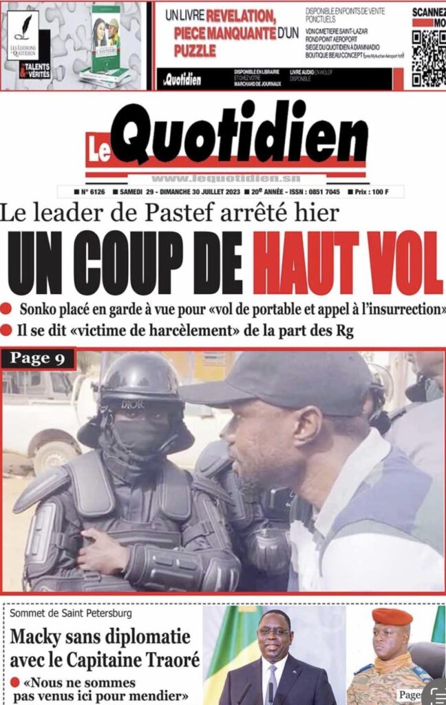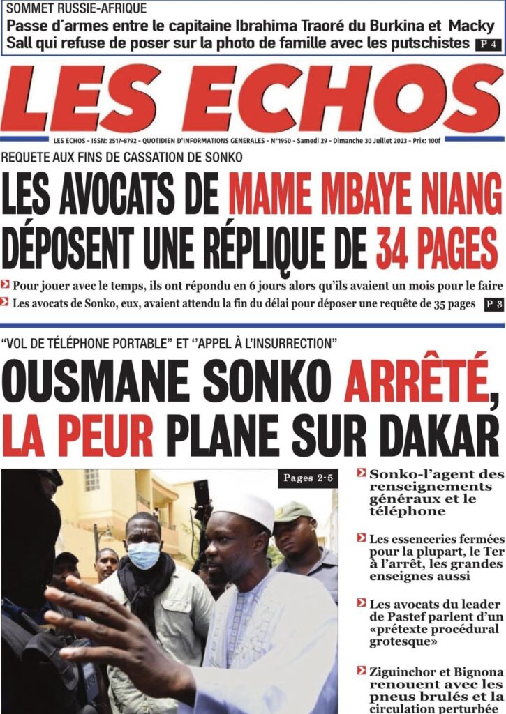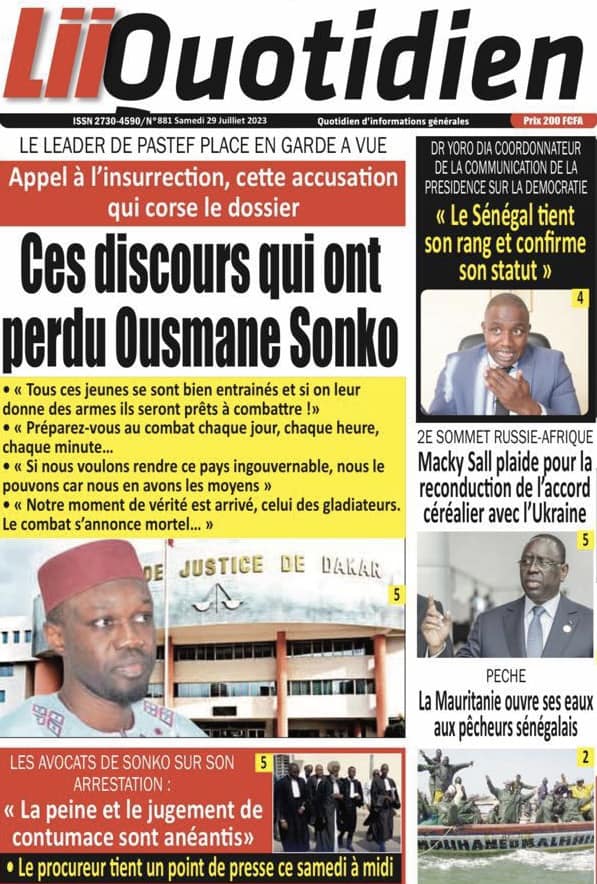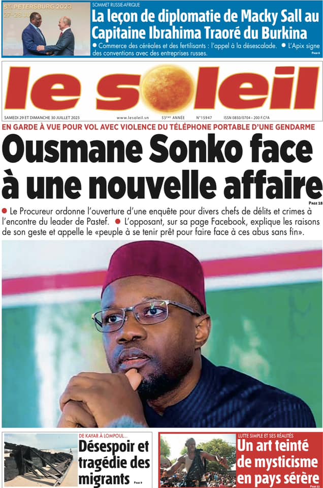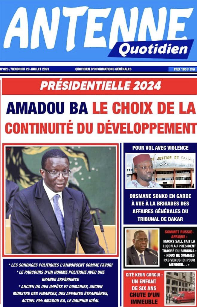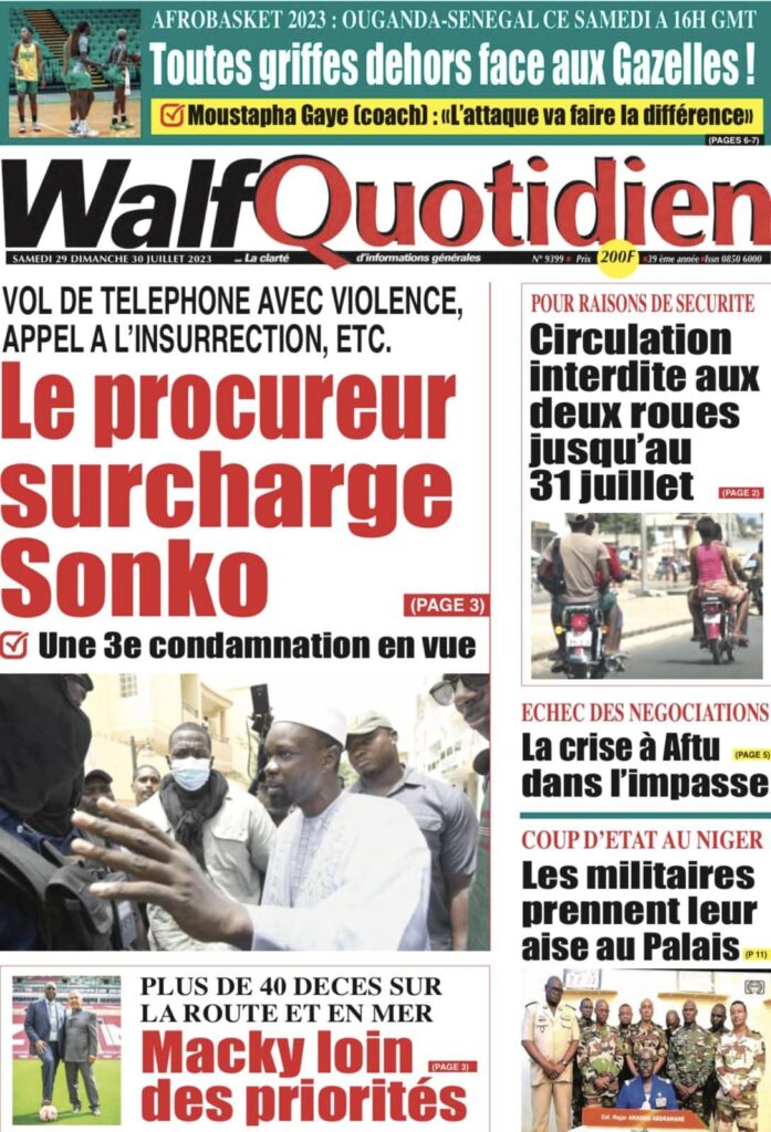 Accueil › Sénégal › Une des journaux du samedi 29 juillet 2023 Actualités Une des journaux du samedi 29 juillet 2023 Abdou Faty GUEYE 29 Juil 2023, 04:48 1 min samedi 29 juillet 2023 une des journaux Votre avis sera publié et visible par des milliers de lecteurs. Veuillez l’exprimer dans un langage respectueux. Commentaire Nom E-mail (ne sera pas visible) Enregistrer mon nom, mon e-mail et mon site web dans le navigateur pour mon prochain commentaire. Partager Partager Partager 0 Laisser un commentaire Annuler la réponseCommentaireNom E-mail (ne sera pas visible) Enregistrer mon nom, mon e-mail et mon site dans le navigateur pour mon prochain commentaire.
