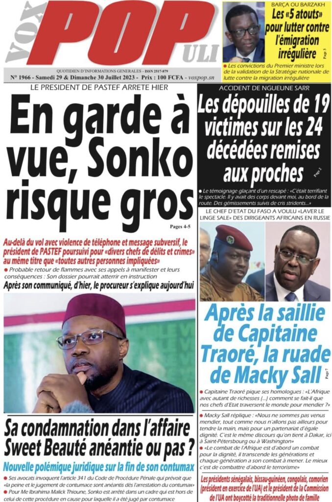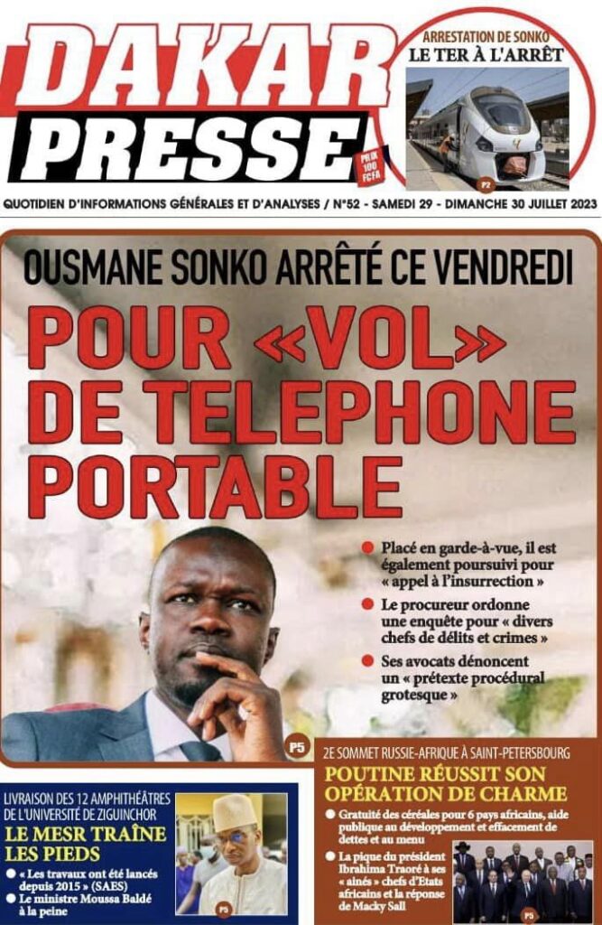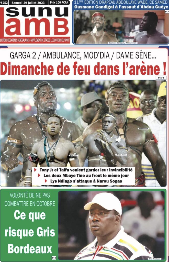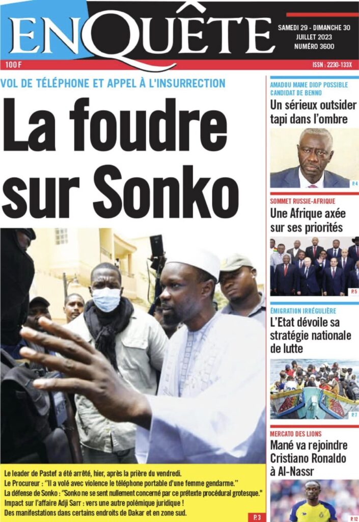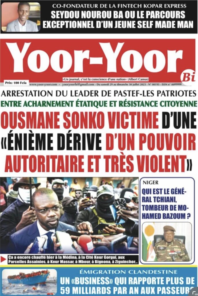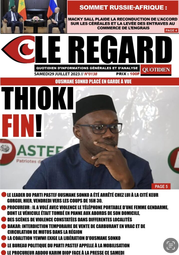 Accueil › Sénégal › Une des journaux du samedi 29 juillet 2023 Actualités Une des journaux du samedi 29 juillet 2023 Abdou Faty GUEYE 29 Juil 2023, 04:48 1 min samedi 29 juillet 2023 une des journaux Votre avis sera publié et visible par des milliers de lecteurs. Veuillez l’exprimer dans un langage respectueux. Commentaire Nom E-mail (ne sera pas visible) Enregistrer mon nom, mon e-mail et mon site web dans le navigateur pour mon prochain commentaire. Partager Partager Partager 0 Laisser un commentaire Annuler la réponseCommentaireNom E-mail (ne sera pas visible) Enregistrer mon nom, mon e-mail et mon site dans le navigateur pour mon prochain commentaire.