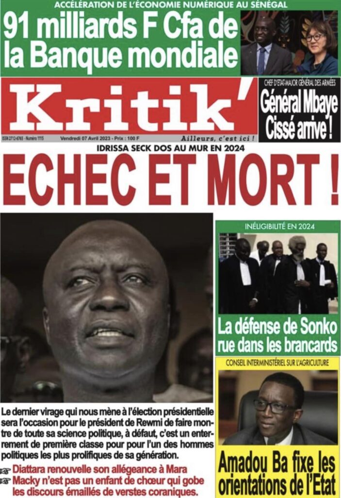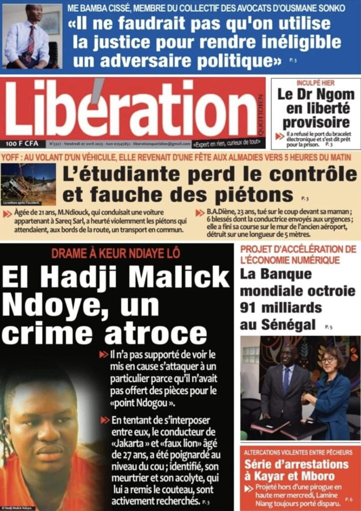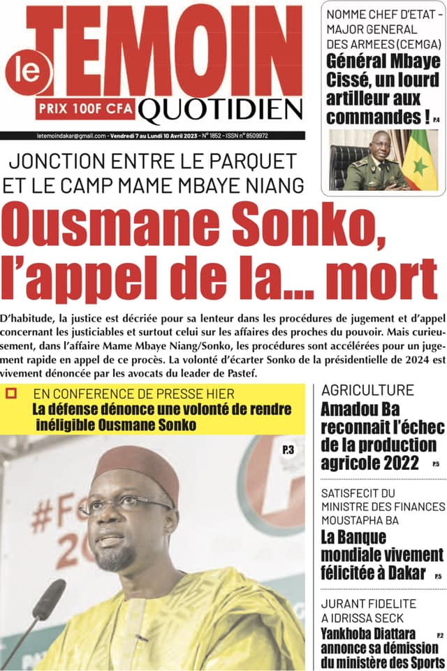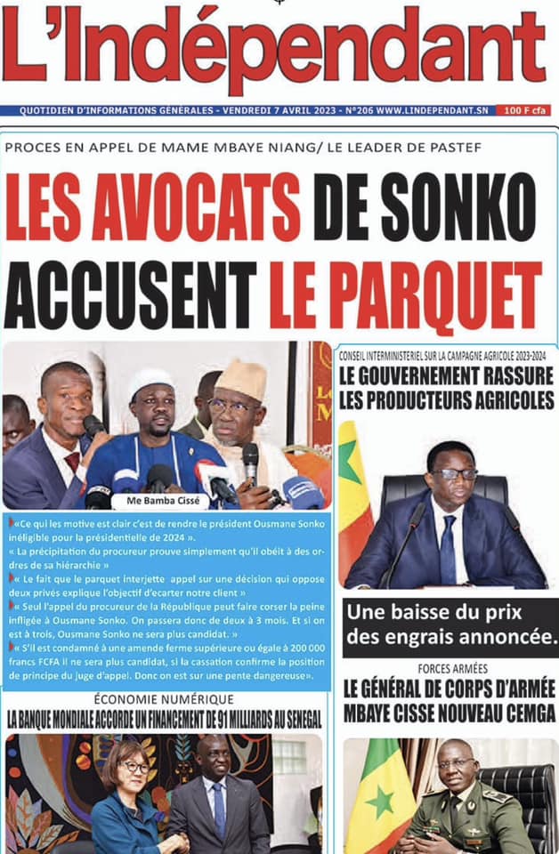 Accueil › Sénégal › Une des journaux du vendredi 07 avril 2023 Actualités Une des journaux du vendredi 07 avril 2023 Abdou Faty GUEYE 7 Avr 2023, 05:10 1 min Une des journaux du vendredi 07 avril 2023 une des journaux vendredi 07 avril 2023 Votre avis sera publié et visible par des milliers de lecteurs. Veuillez l’exprimer dans un langage respectueux. Commentaire Nom E-mail (ne sera pas visible) Enregistrer mon nom, mon e-mail et mon site web dans le navigateur pour mon prochain commentaire. Partager Partager Partager 0 Laisser un commentaire Annuler la réponseCommentaireNom E-mail (ne sera pas visible) Enregistrer mon nom, mon e-mail et mon site dans le navigateur pour mon prochain commentaire.