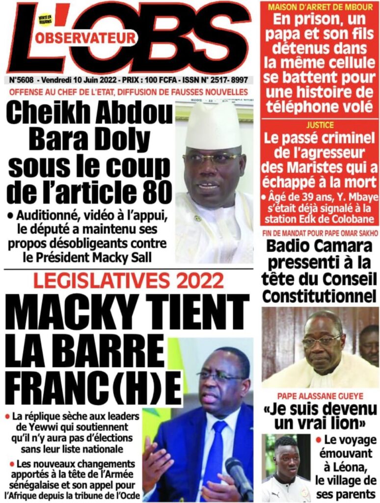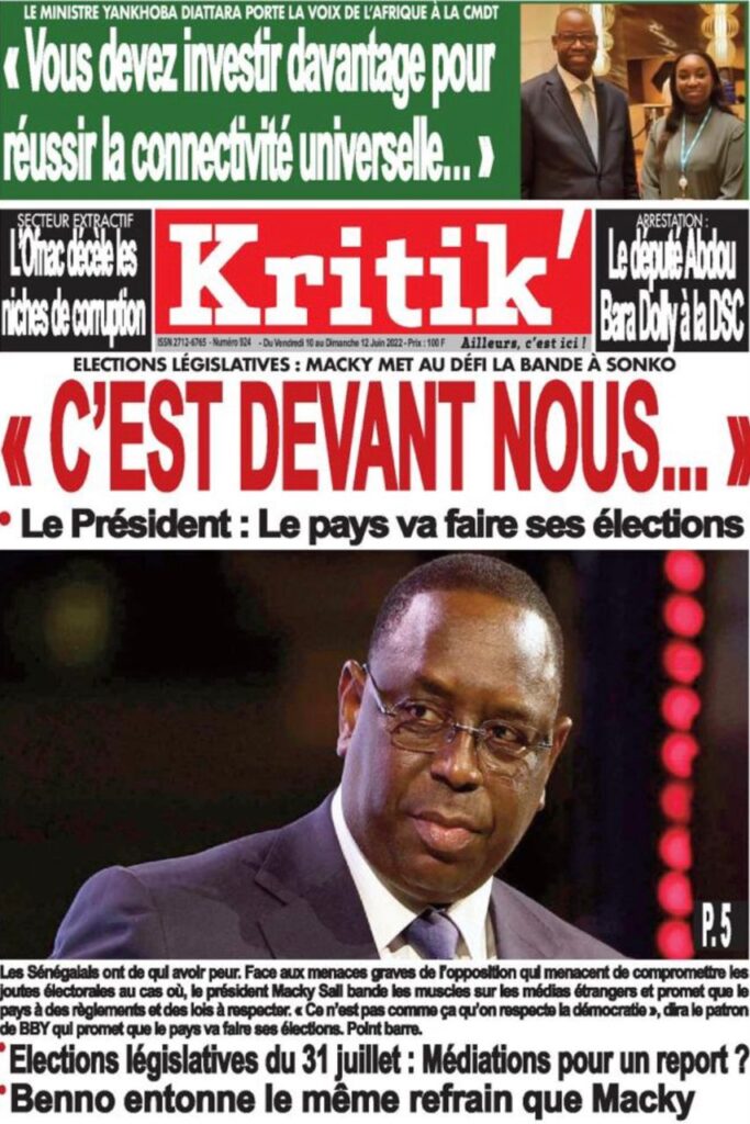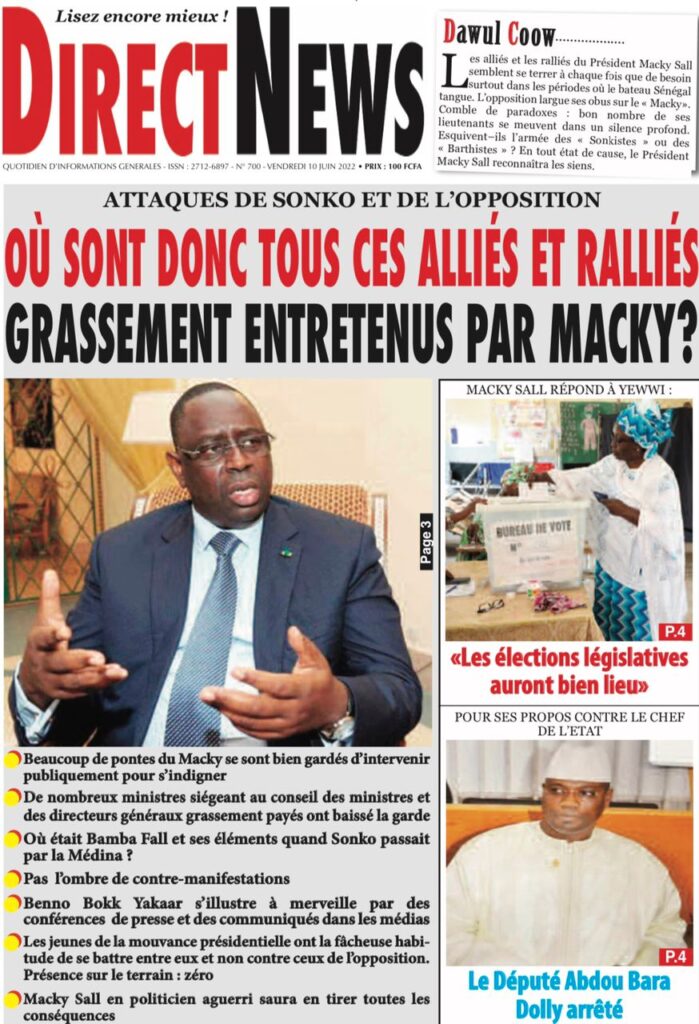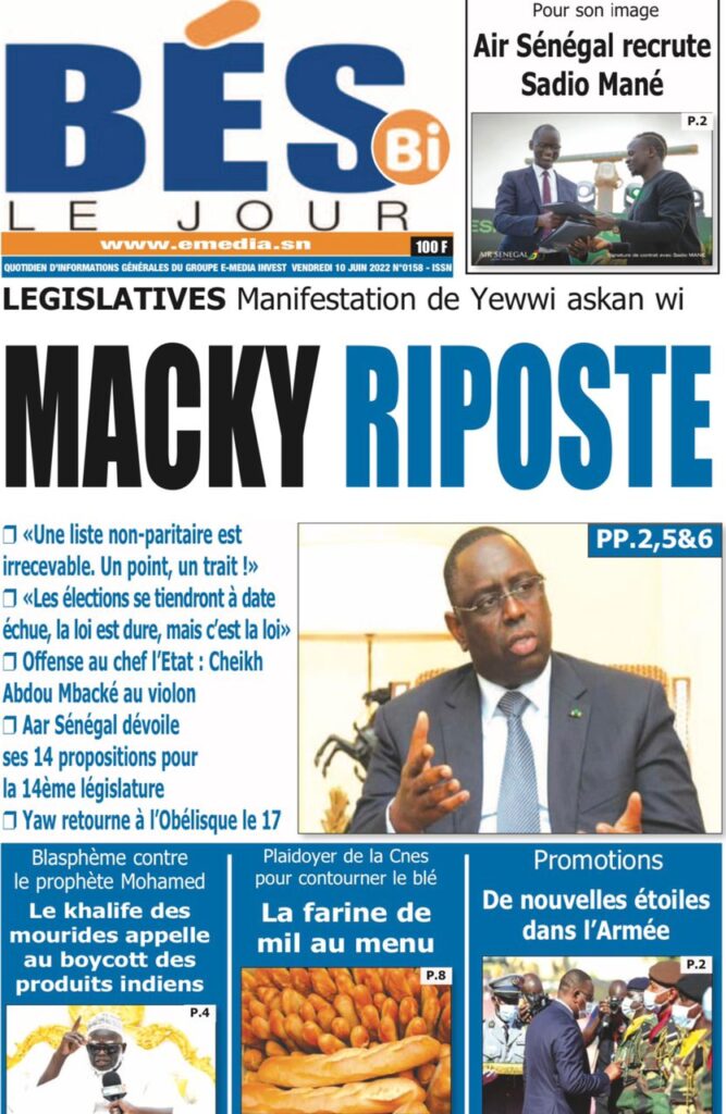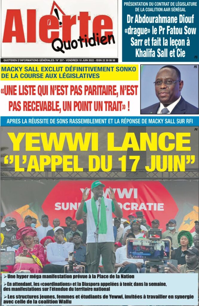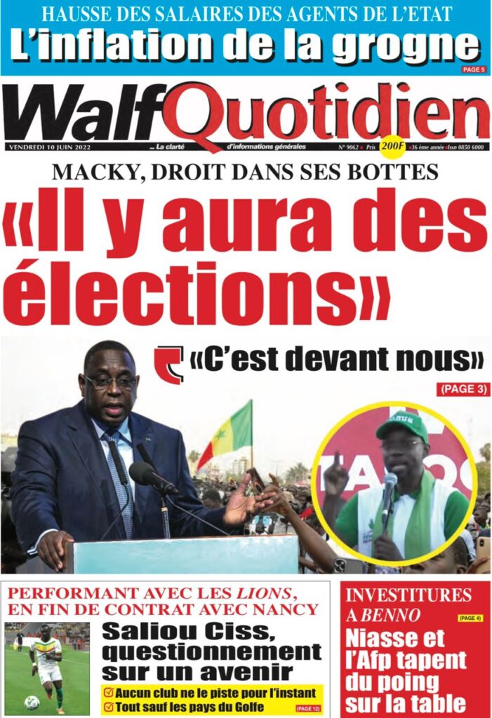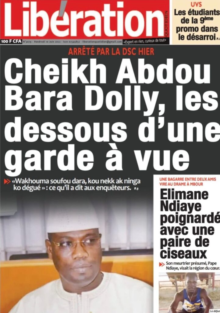 Accueil › Sénégal › Une des journaux du vendredi 10 juin 2022 Une des journaux du vendredi 10 juin 2022 Publié le 10 Juin 2022, à 07:28 par Abdou Faty GUEYE Une des journaux du vendredi 10 juin 2022 Votre avis sera publié et visible par des milliers de lecteurs. Veuillez l’exprimer dans un langage respectueux. Commentaire Nom E-mail (ne sera pas visible) Enregistrer mon nom, mon e-mail et mon site web dans le navigateur pour mon prochain commentaire. Partager Partager Partager 0 Laisser un commentaire Annuler la réponseCommentaireNom E-mail (ne sera pas visible) Enregistrer mon nom, mon e-mail et mon site dans le navigateur pour mon prochain commentaire.