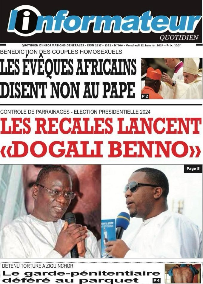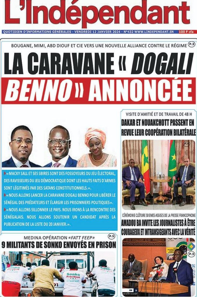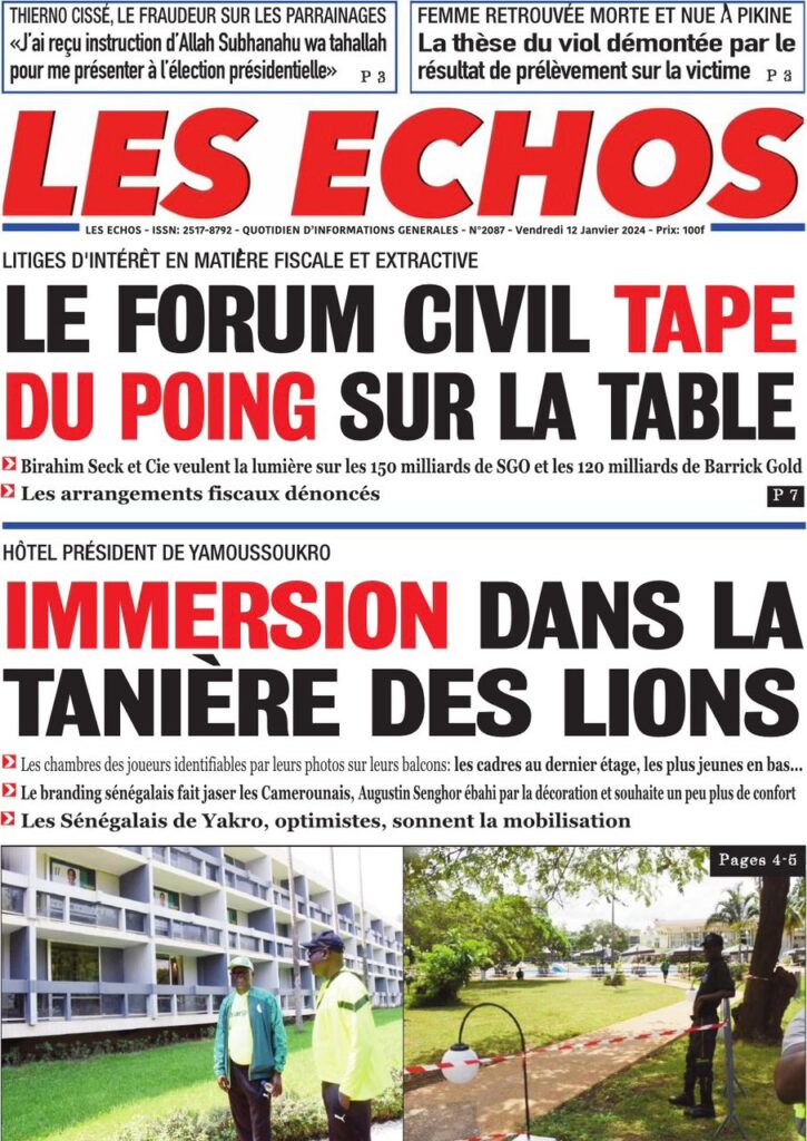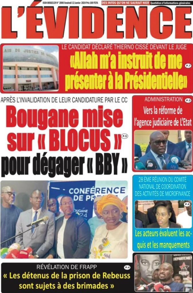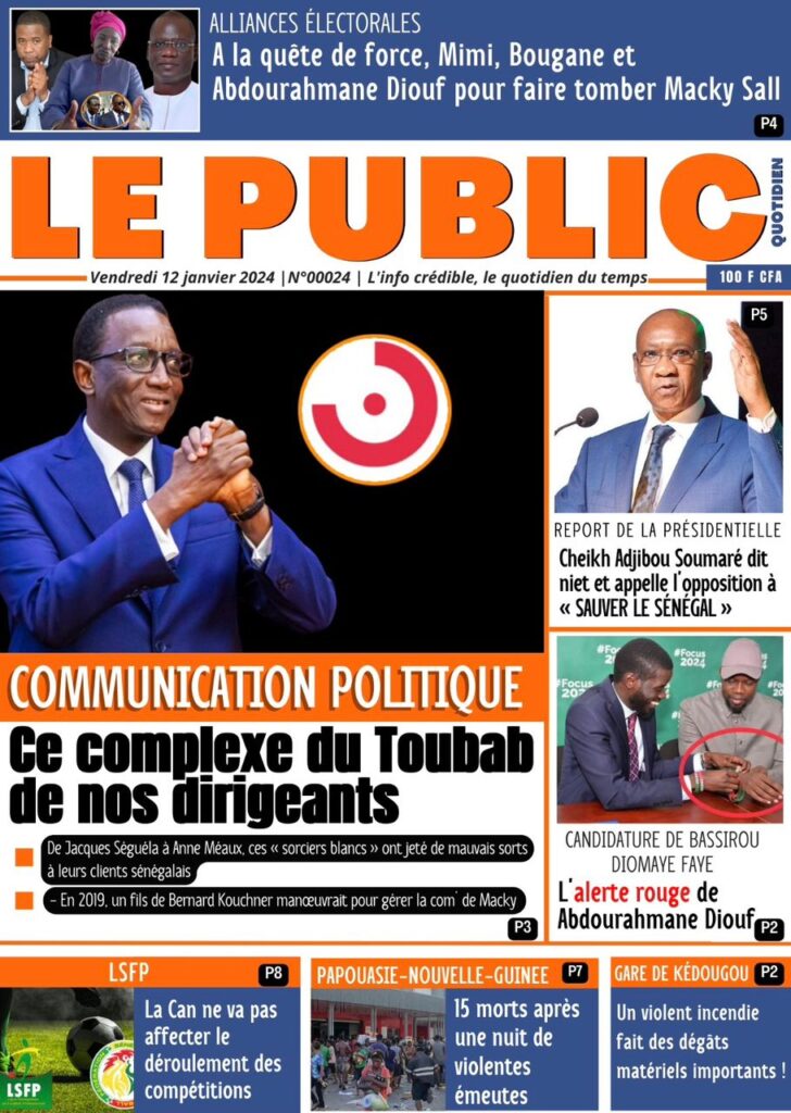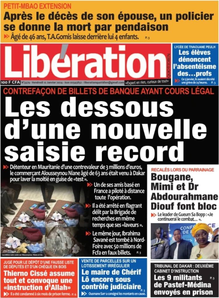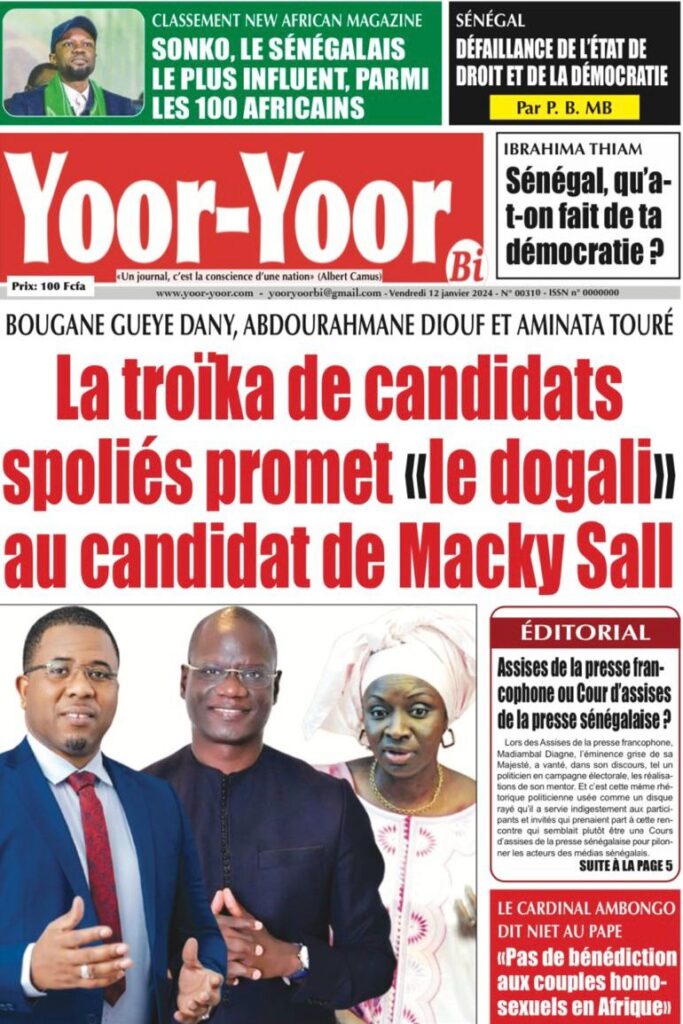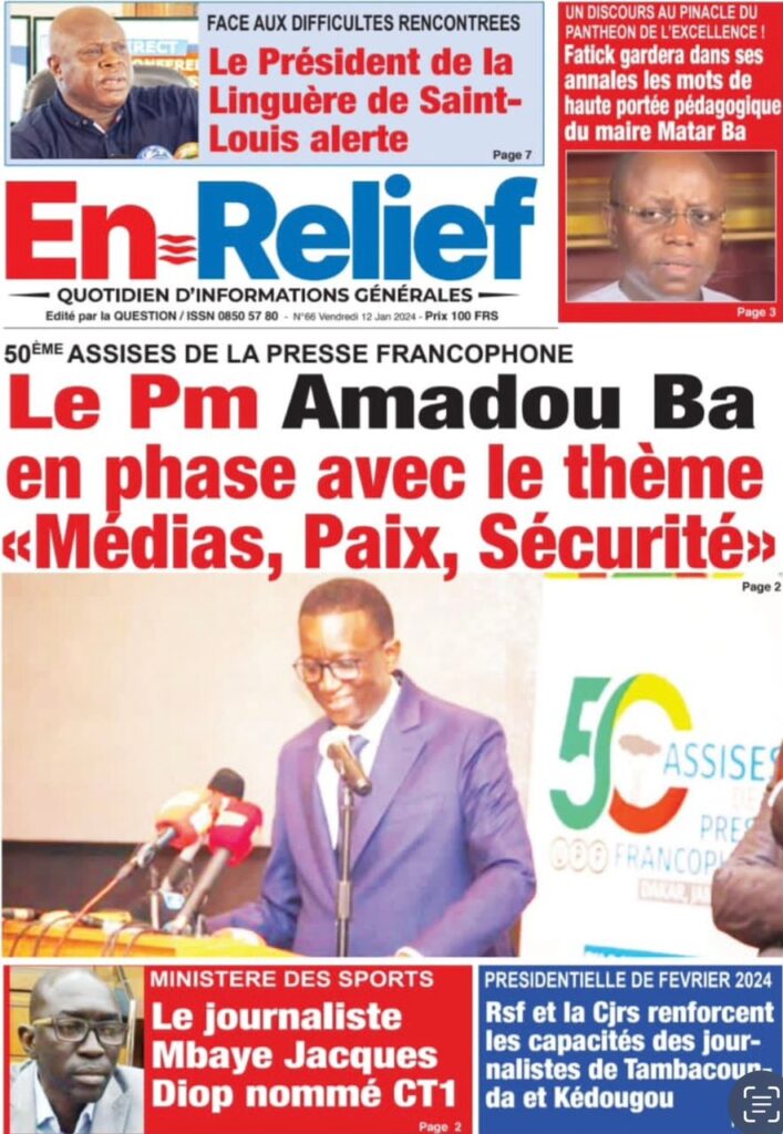 Une des journaux du vendredi 12 décembre 2024