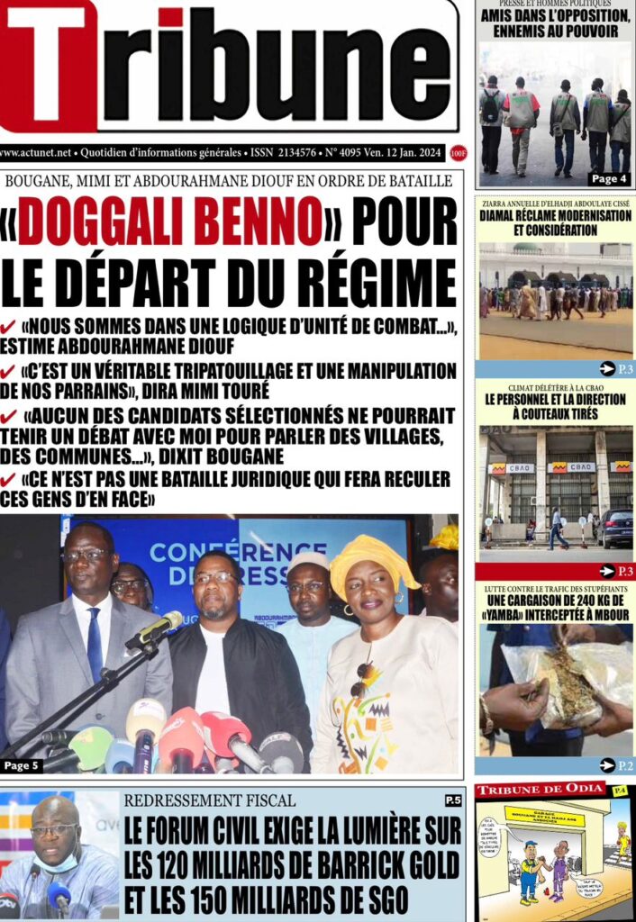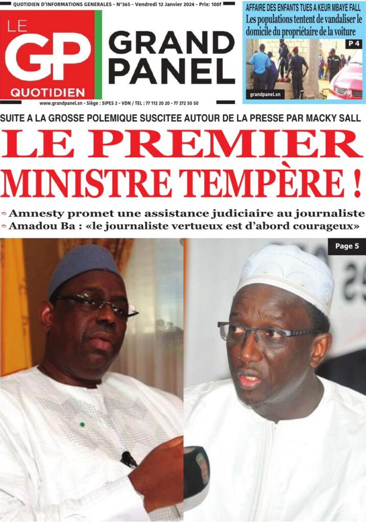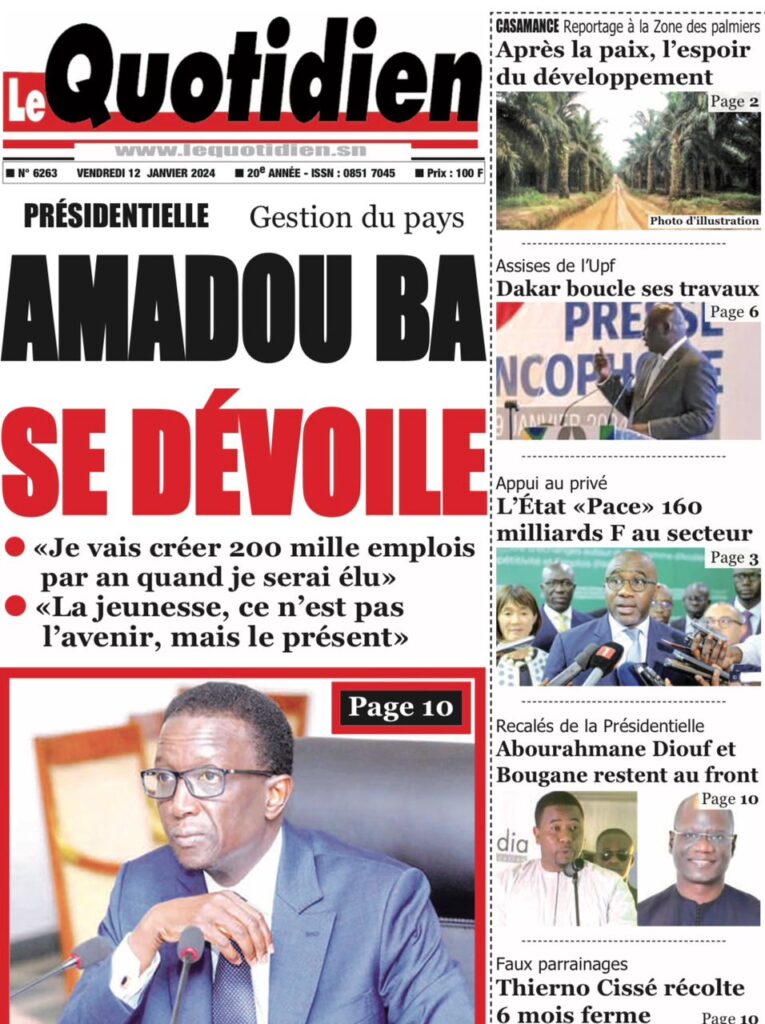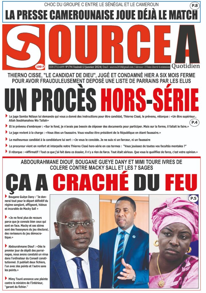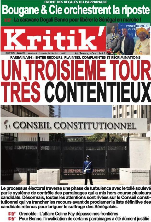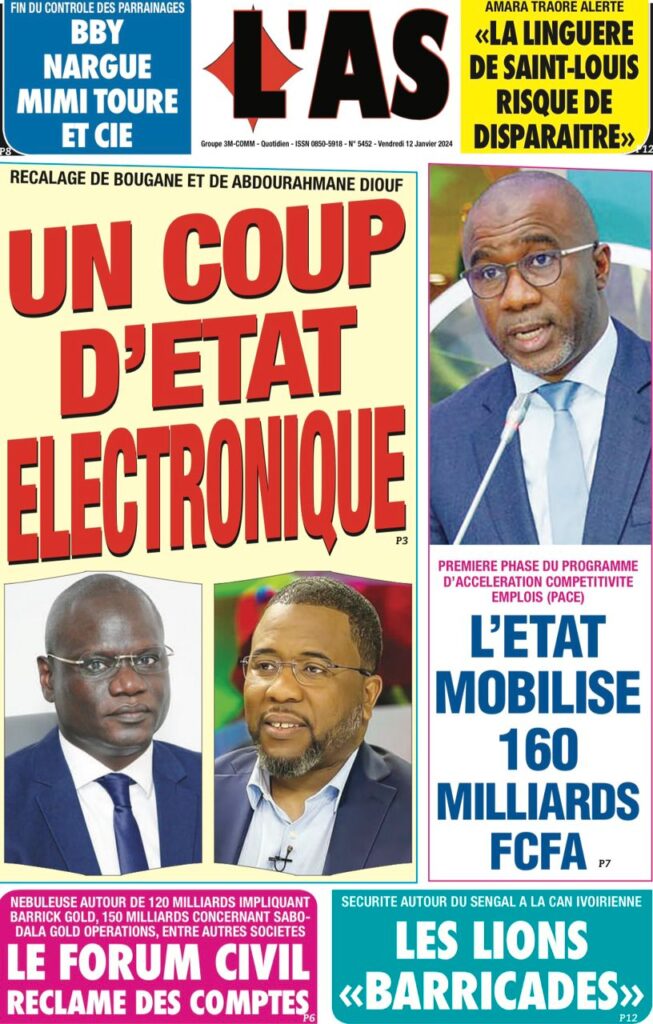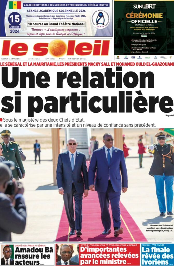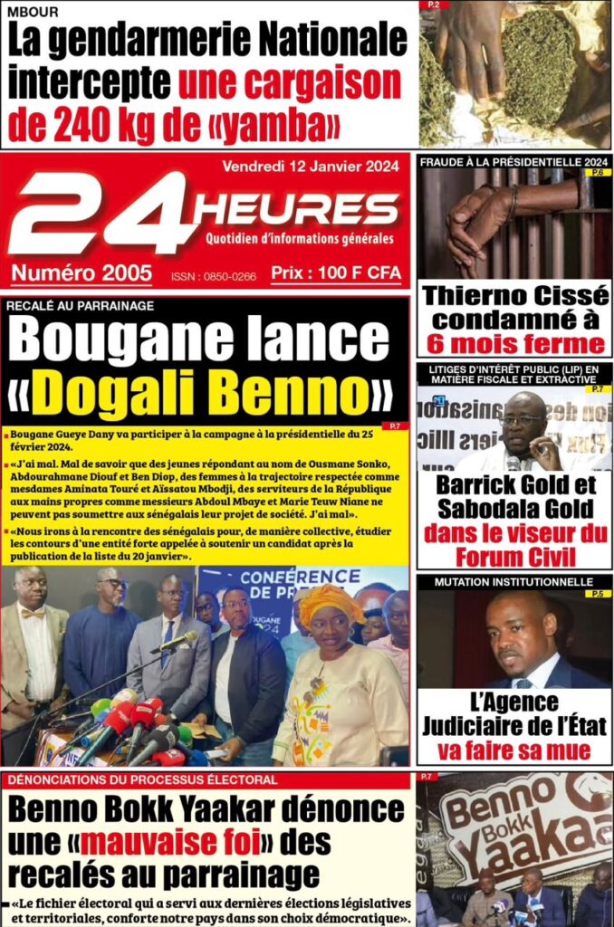 Une des journaux du vendredi 12 décembre 2024