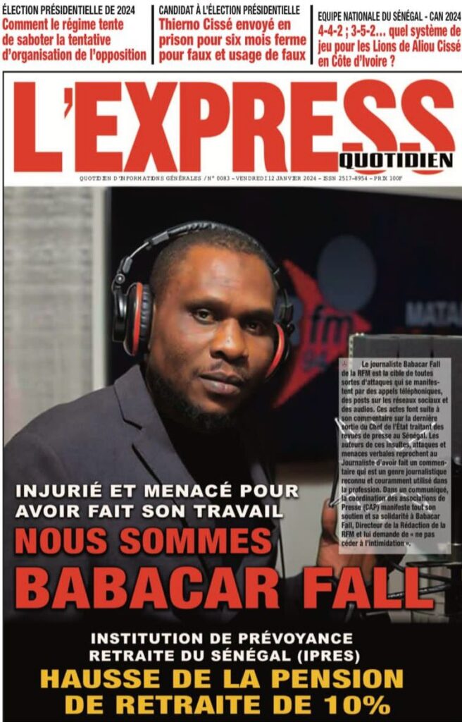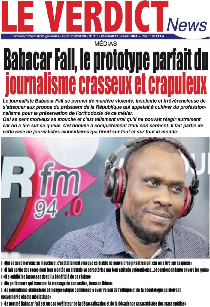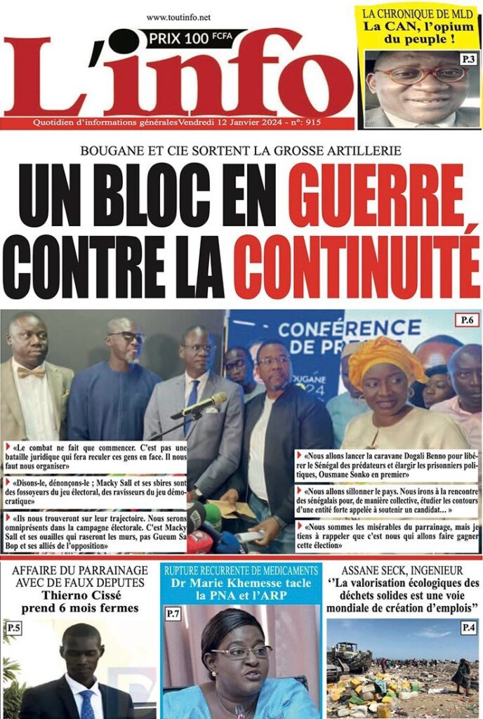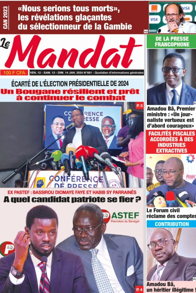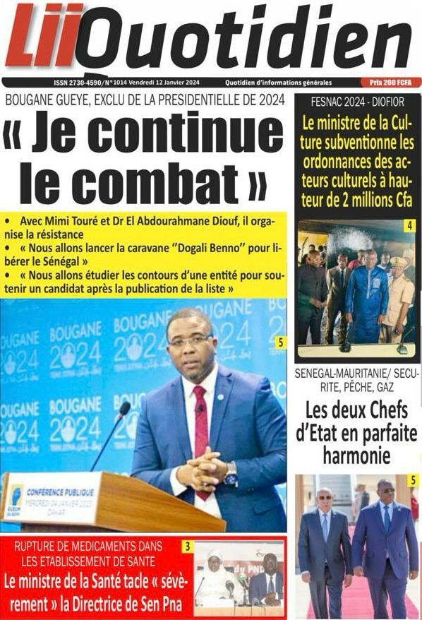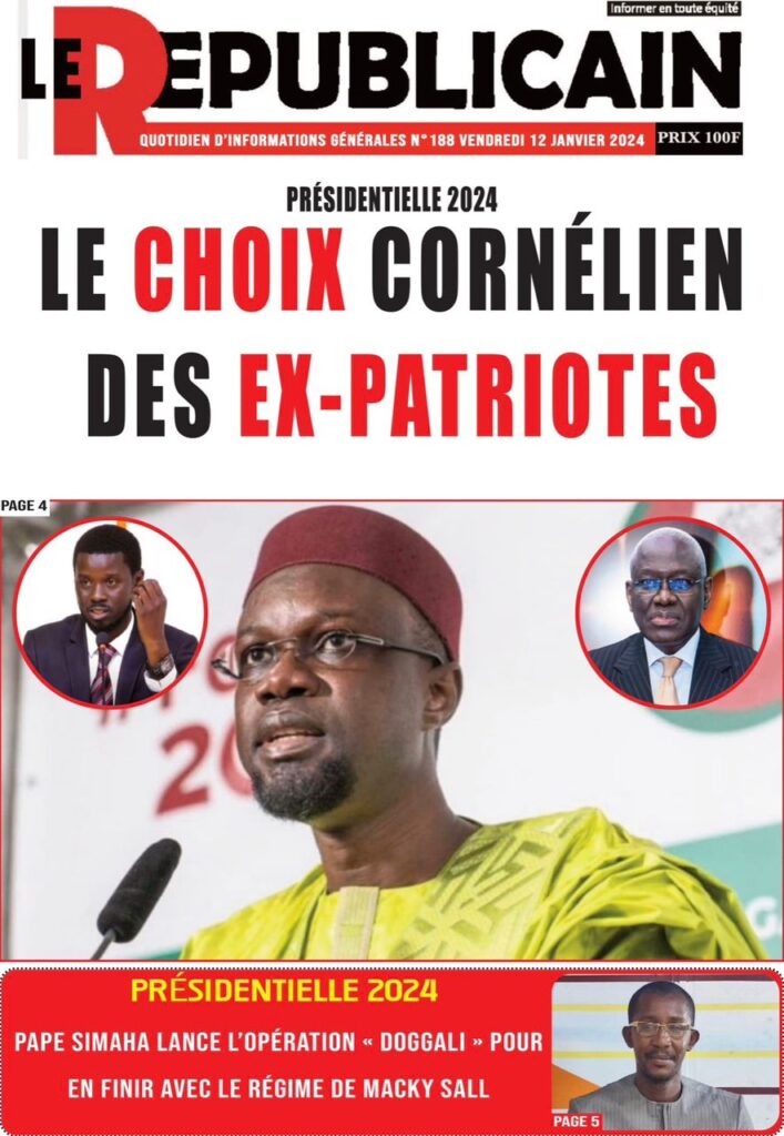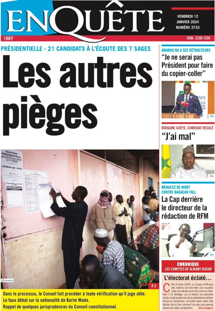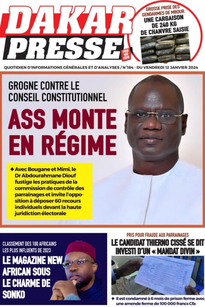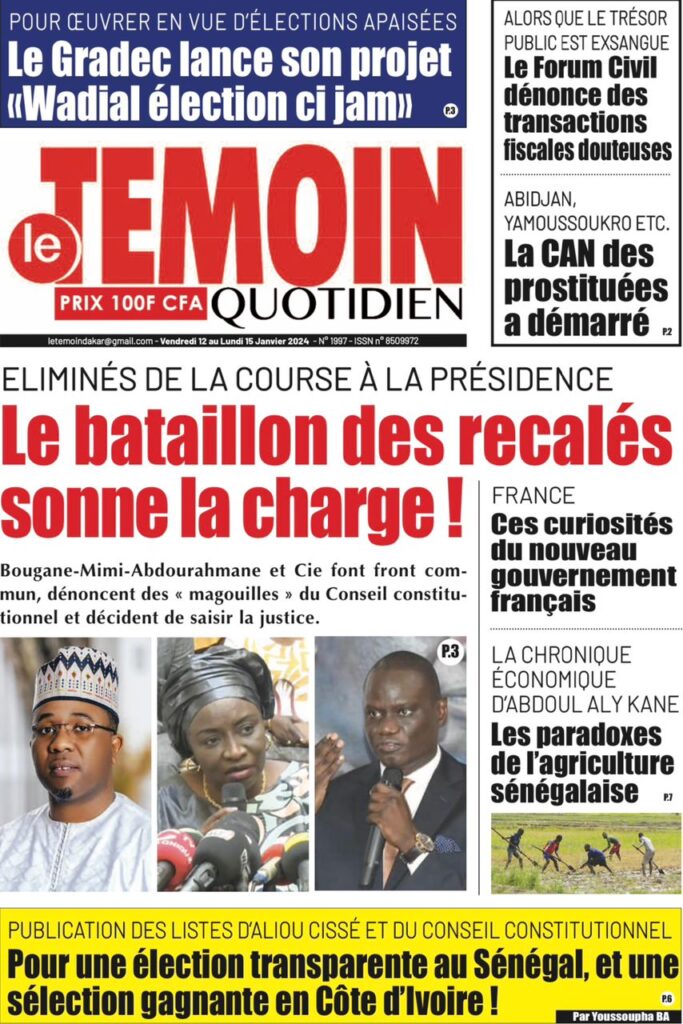 Une des journaux du vendredi 12 décembre 2024