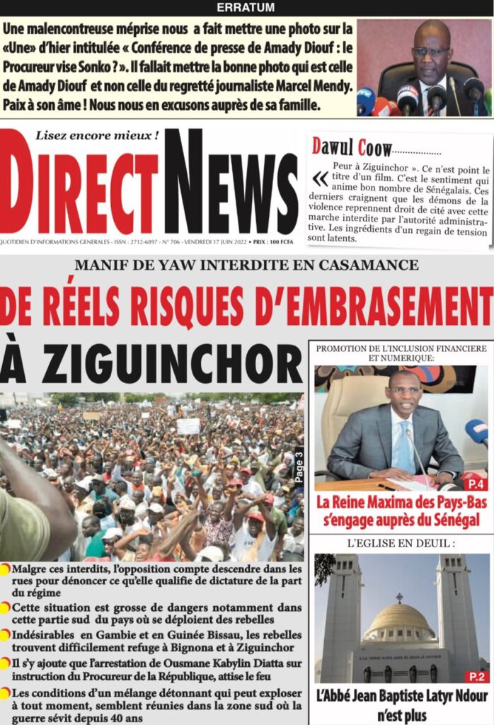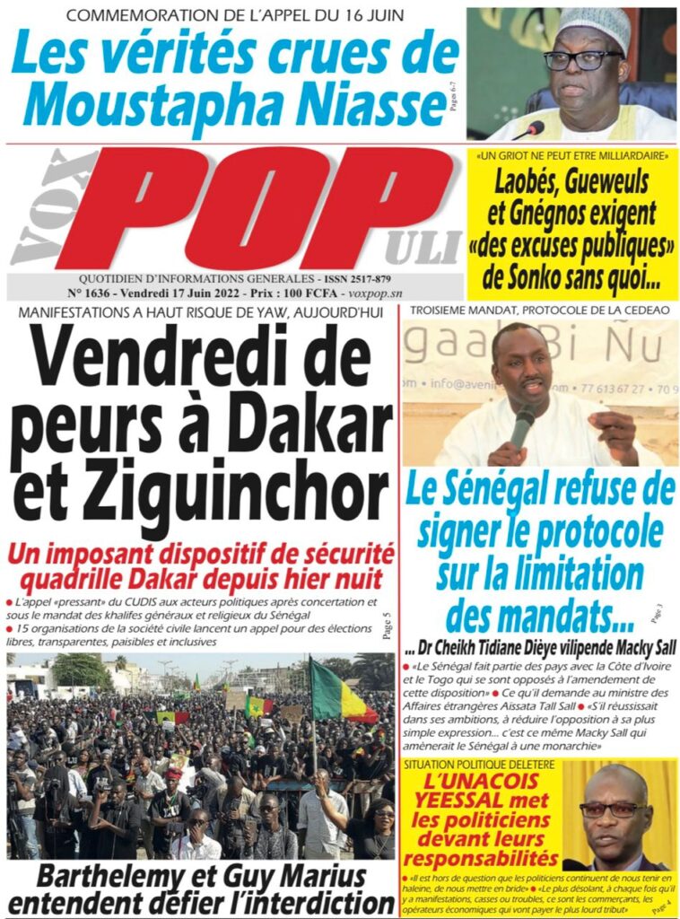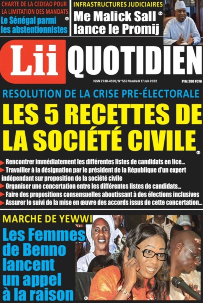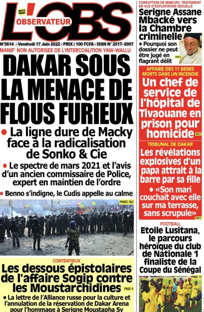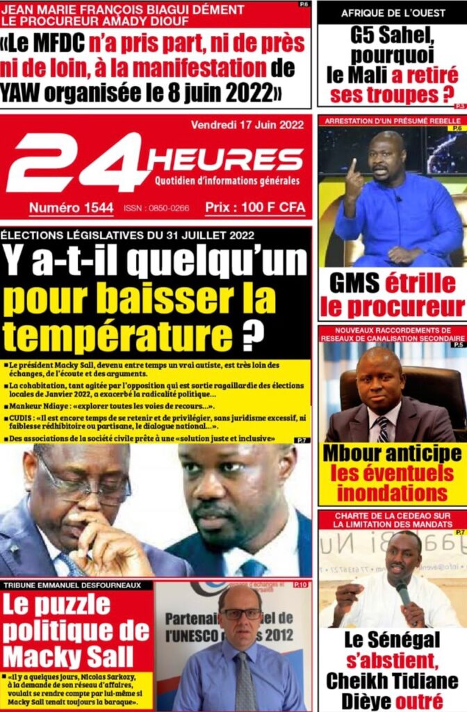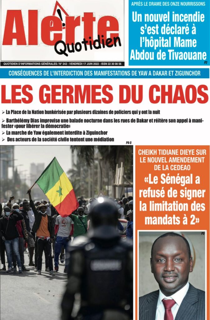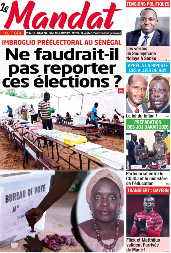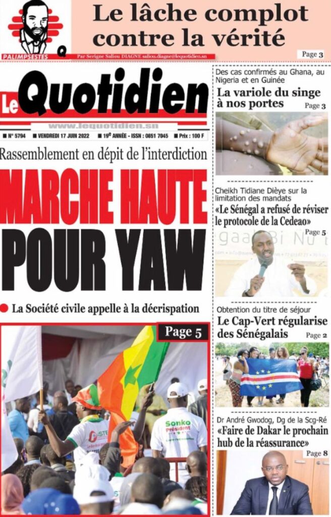 Accueil ›Sénégal ›Une des journaux du vendredi 17 juin 2022Une des journaux du vendredi 17 juin 2022 Publié le 17 Juin 2022, à 08:00 par Abdou Faty GUEYE Une des journaux du vendredi 17 juin 2022Votre avis sera publié et visible par des milliers de lecteurs. Veuillez l’exprimer dans un langage respectueux. Commentaire Nom E-mail (ne sera pas visible) Enregistrer mon nom, mon e-mail et mon site web dans le navigateur pour mon prochain commentaire. Partager Partager Partager 0 Laisser un commentaire Annuler la réponseCommentaireNom E-mail (ne sera pas visible) Enregistrer mon nom, mon e-mail et mon site dans le navigateur pour mon prochain commentaire.