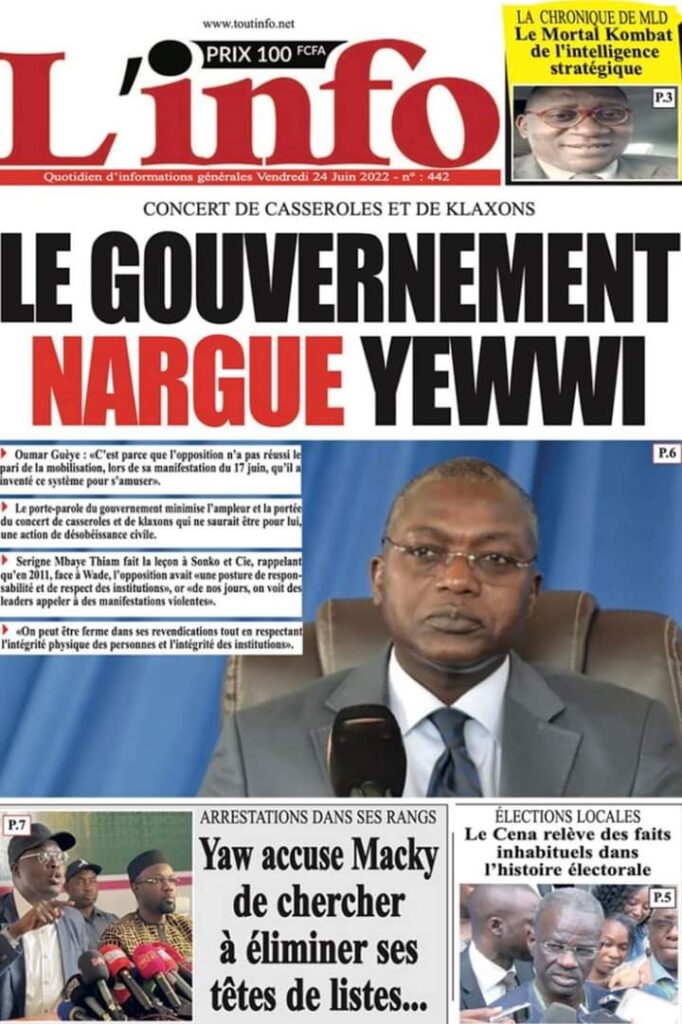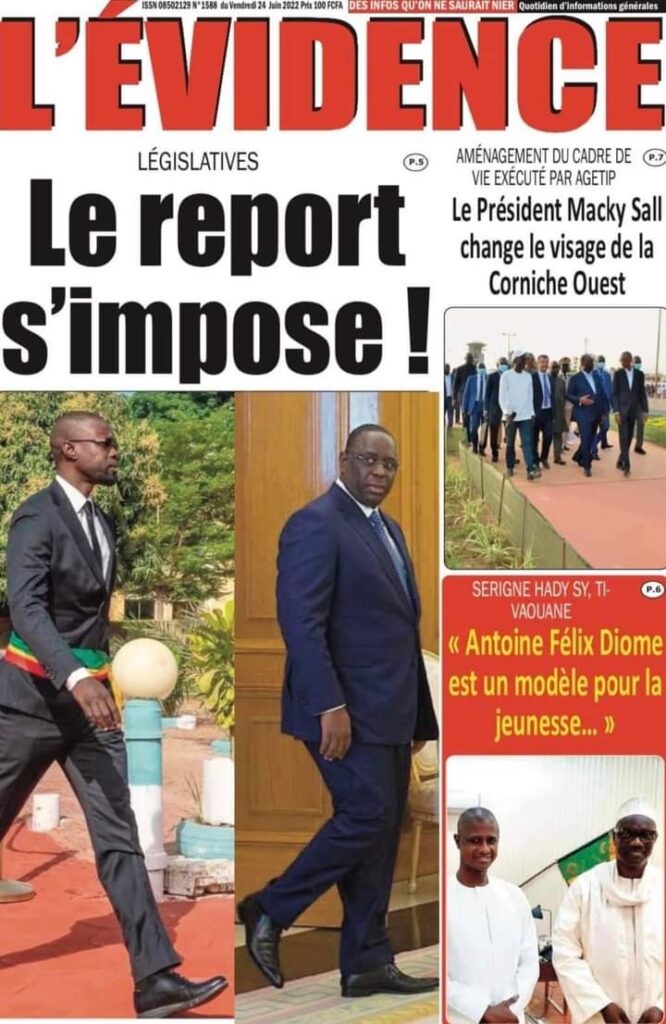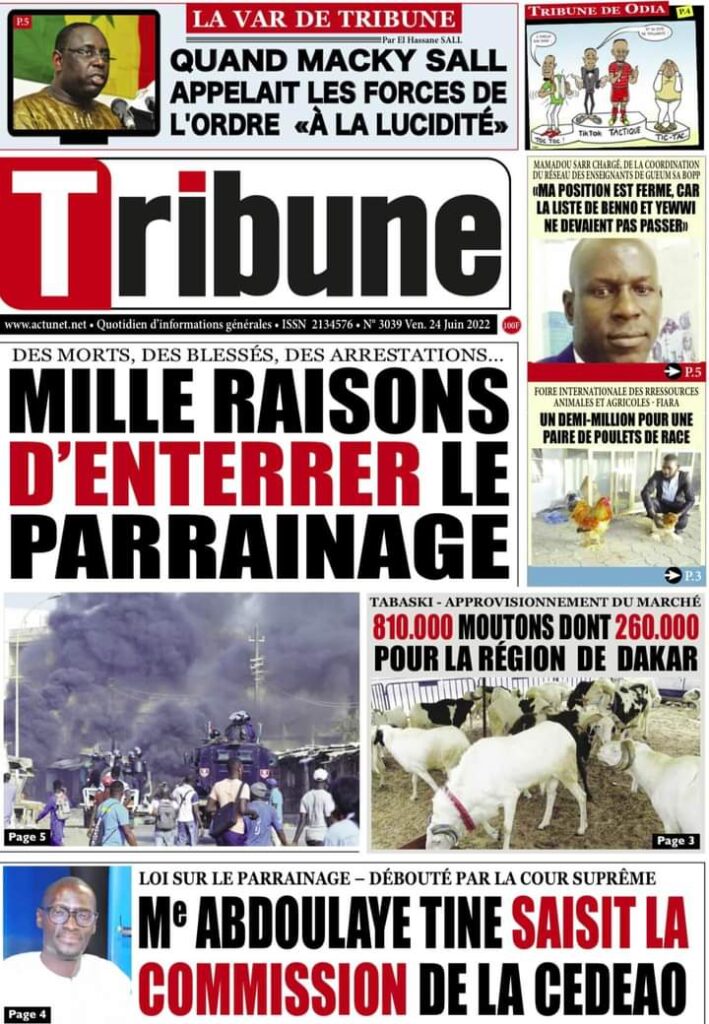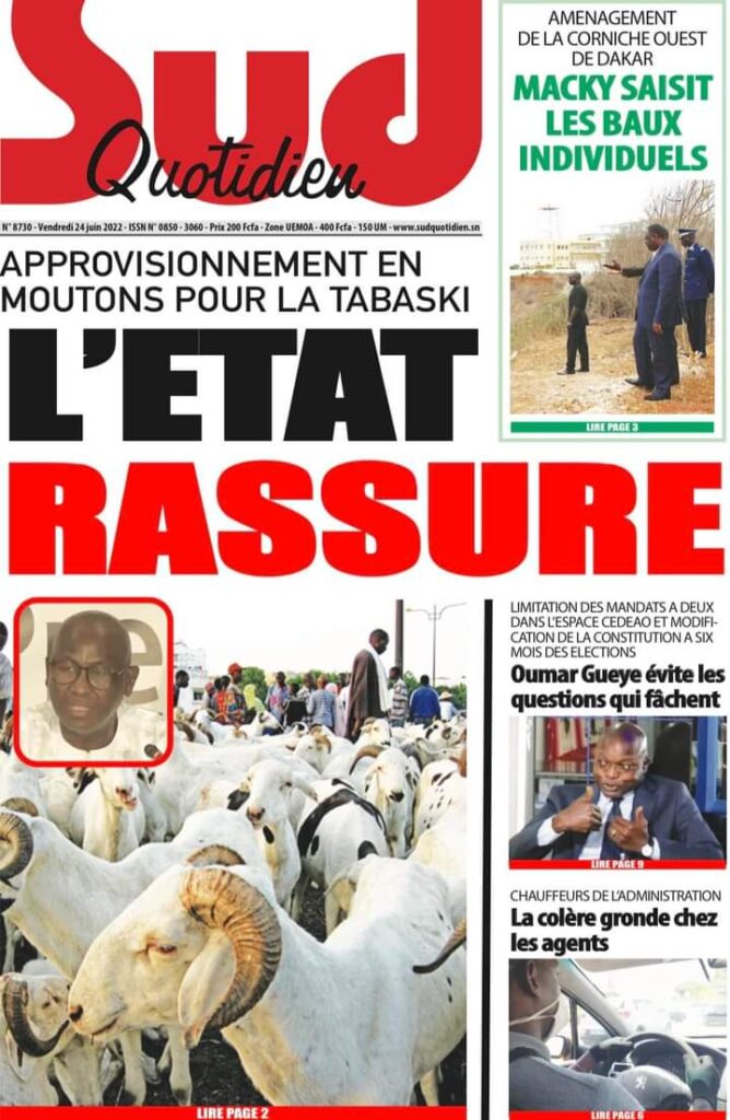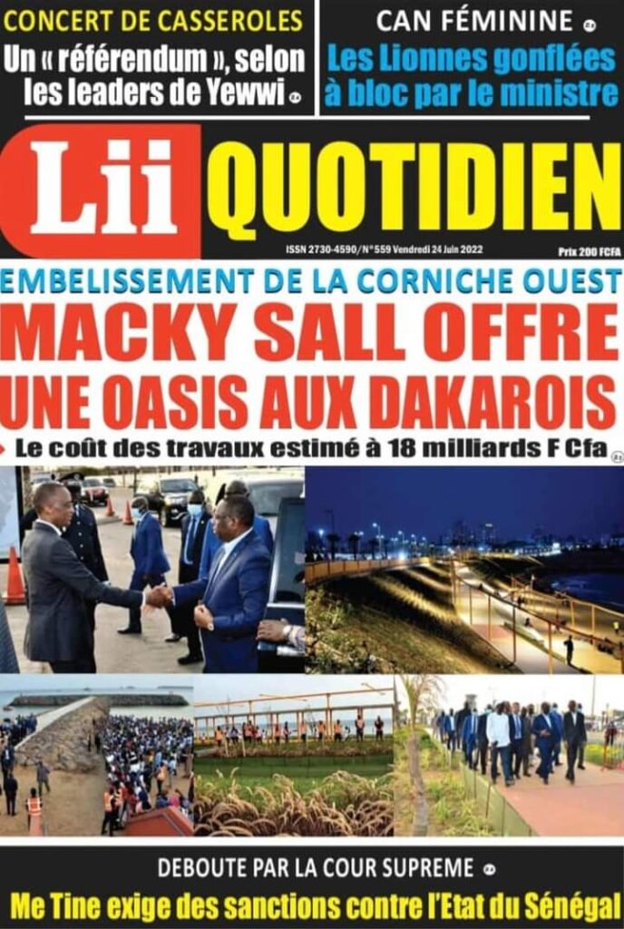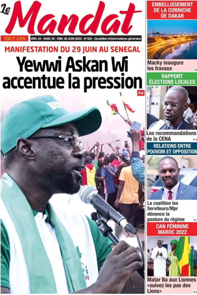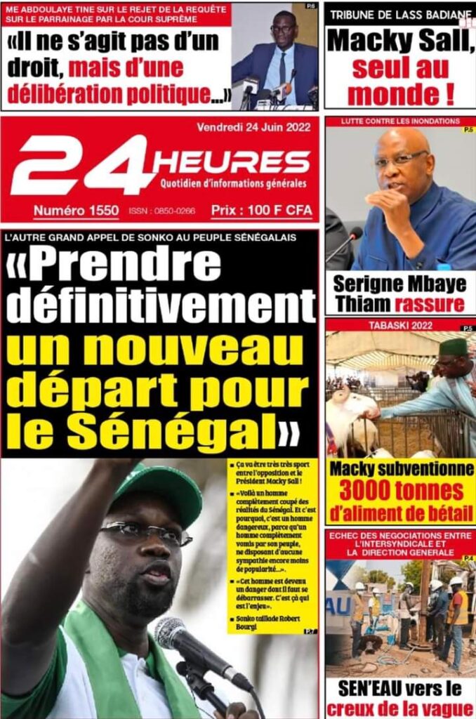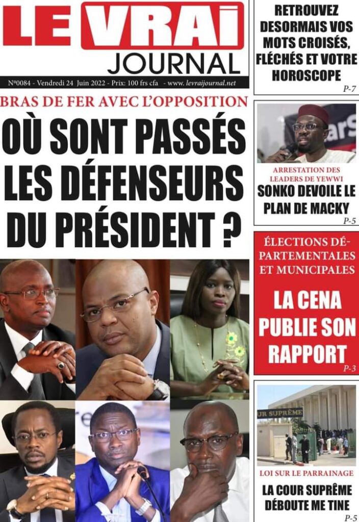 Accueil ›Sénégal ›Une des journaux du vendredi 24 juin 2022Une des journaux du vendredi 24 juin 2022 Publié le 24 Juin 2022, à 06:26 par Abdou Faty GUEYE Une des journaux du vendredi 24 juin 2022Votre avis sera publié et visible par des milliers de lecteurs. Veuillez l’exprimer dans un langage respectueux. Commentaire Nom E-mail (ne sera pas visible) Enregistrer mon nom, mon e-mail et mon site web dans le navigateur pour mon prochain commentaire. Partager Partager Partager 0 Laisser un commentaire Annuler la réponseCommentaireNom E-mail (ne sera pas visible) Enregistrer mon nom, mon e-mail et mon site dans le navigateur pour mon prochain commentaire.