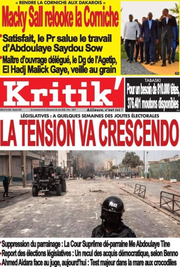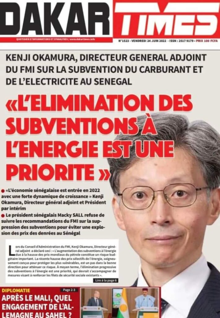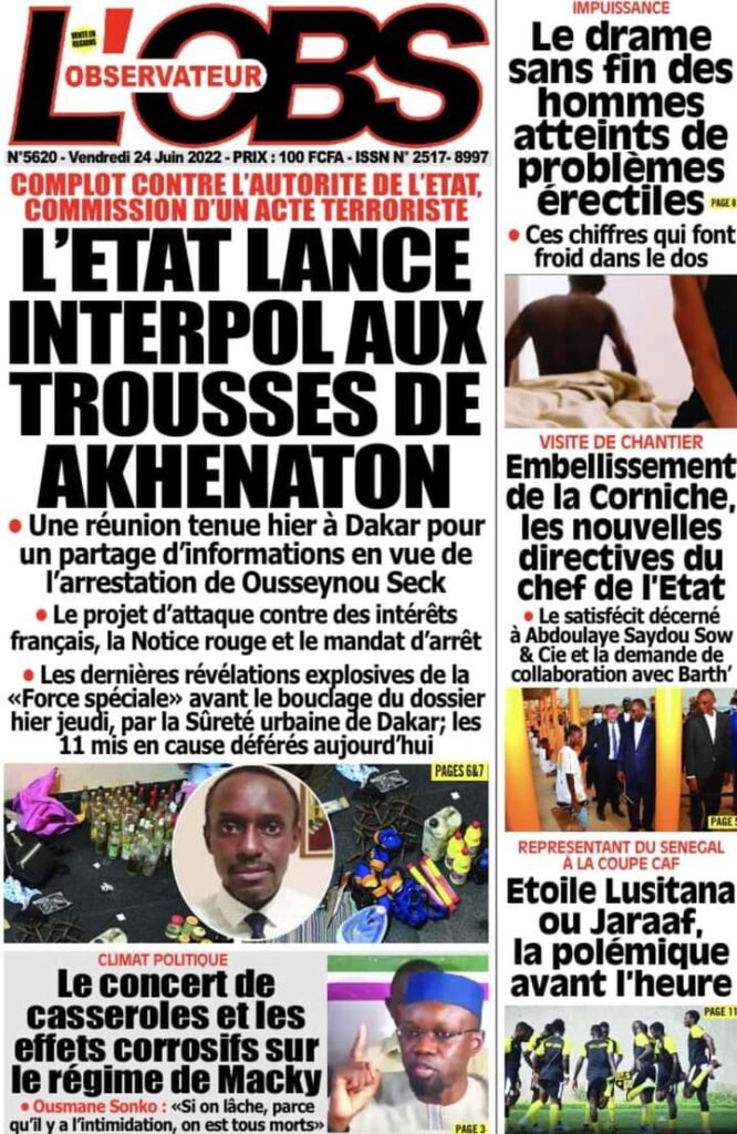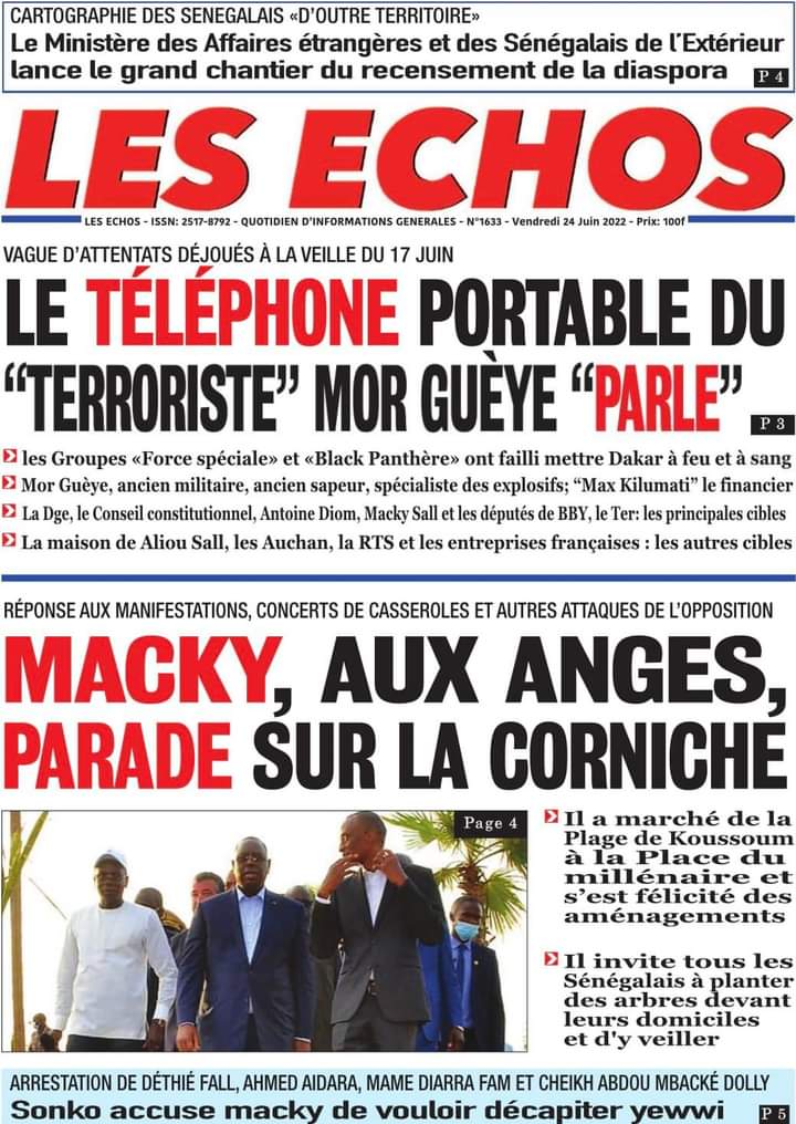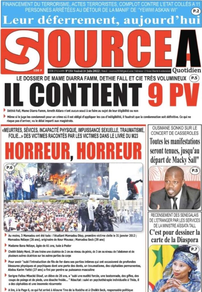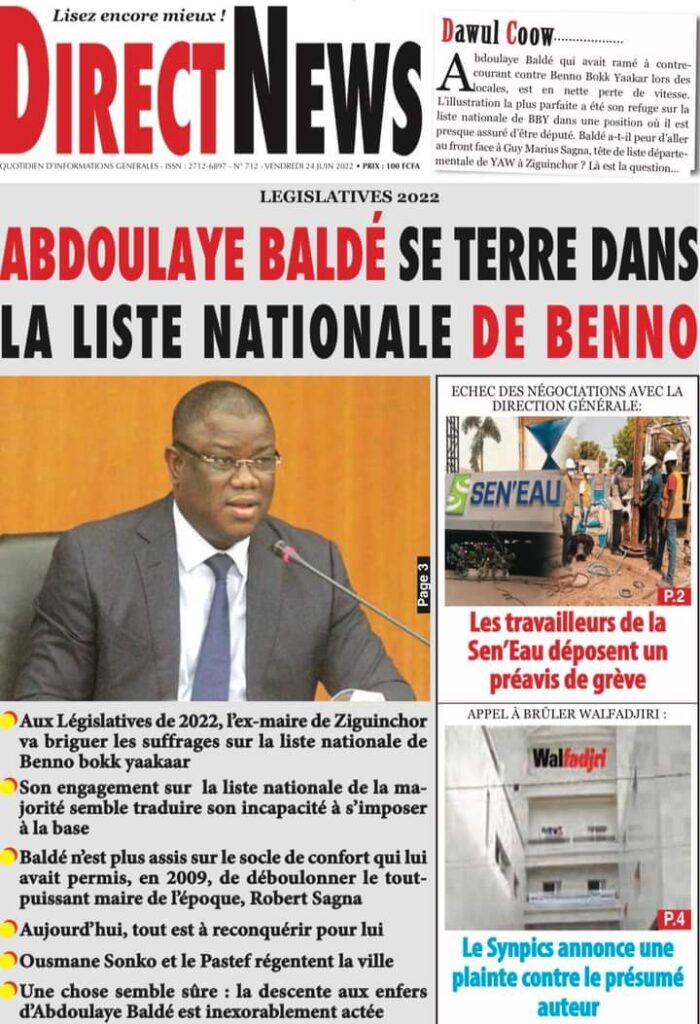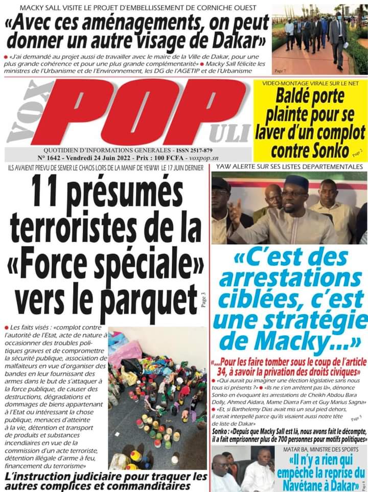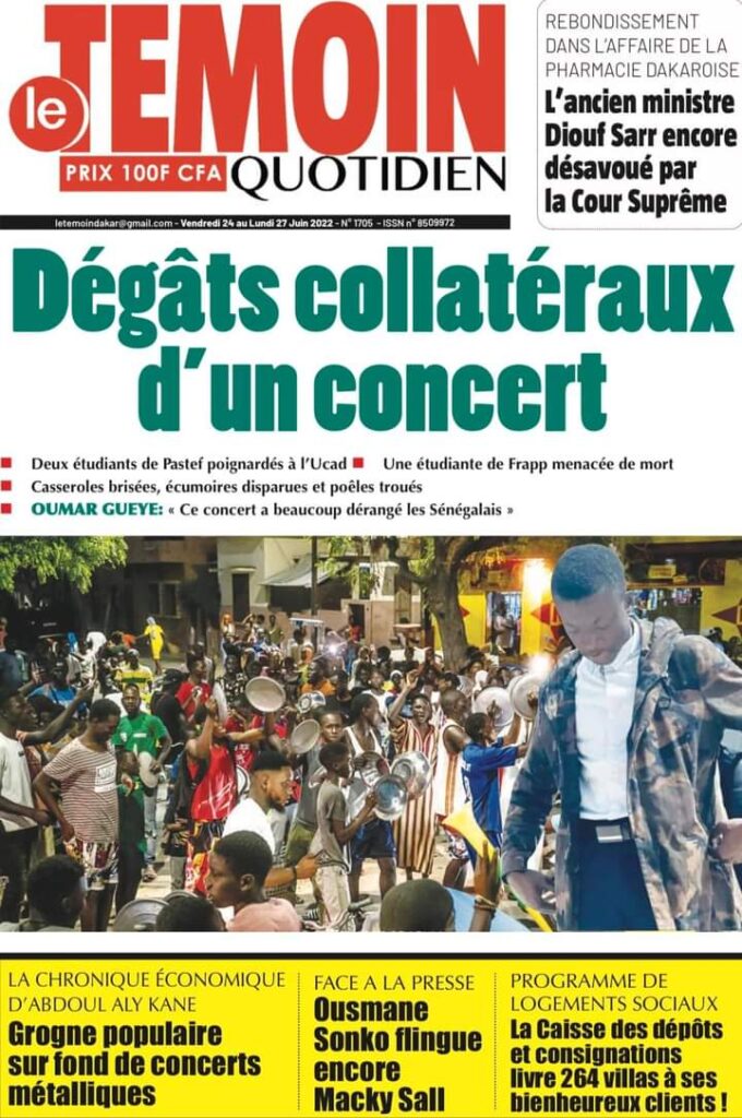 Accueil ›Sénégal ›Une des journaux du vendredi 24 juin 2022Une des journaux du vendredi 24 juin 2022 Publié le 24 Juin 2022, à 06:26 par Abdou Faty GUEYE Une des journaux du vendredi 24 juin 2022Votre avis sera publié et visible par des milliers de lecteurs. Veuillez l’exprimer dans un langage respectueux. Commentaire Nom E-mail (ne sera pas visible) Enregistrer mon nom, mon e-mail et mon site web dans le navigateur pour mon prochain commentaire. Partager Partager Partager 0 Laisser un commentaire Annuler la réponseCommentaireNom E-mail (ne sera pas visible) Enregistrer mon nom, mon e-mail et mon site dans le navigateur pour mon prochain commentaire.