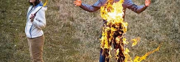 Vidéo : Ce con se fait brûler les poils pubiens par un ami, Regardez: